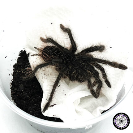 The Stripe Knee is a high-contrast masterpiece of the tropical dry forests and one of the most recognizable terrestrial species in the world. Aphonopelma seemanni is world-famous for its deep charcoal-to-jet-black body, accented by brilliant white-to-cream vertical stripes on its knees—a “Zebra” aesthetic that makes it a top-tier display animal.