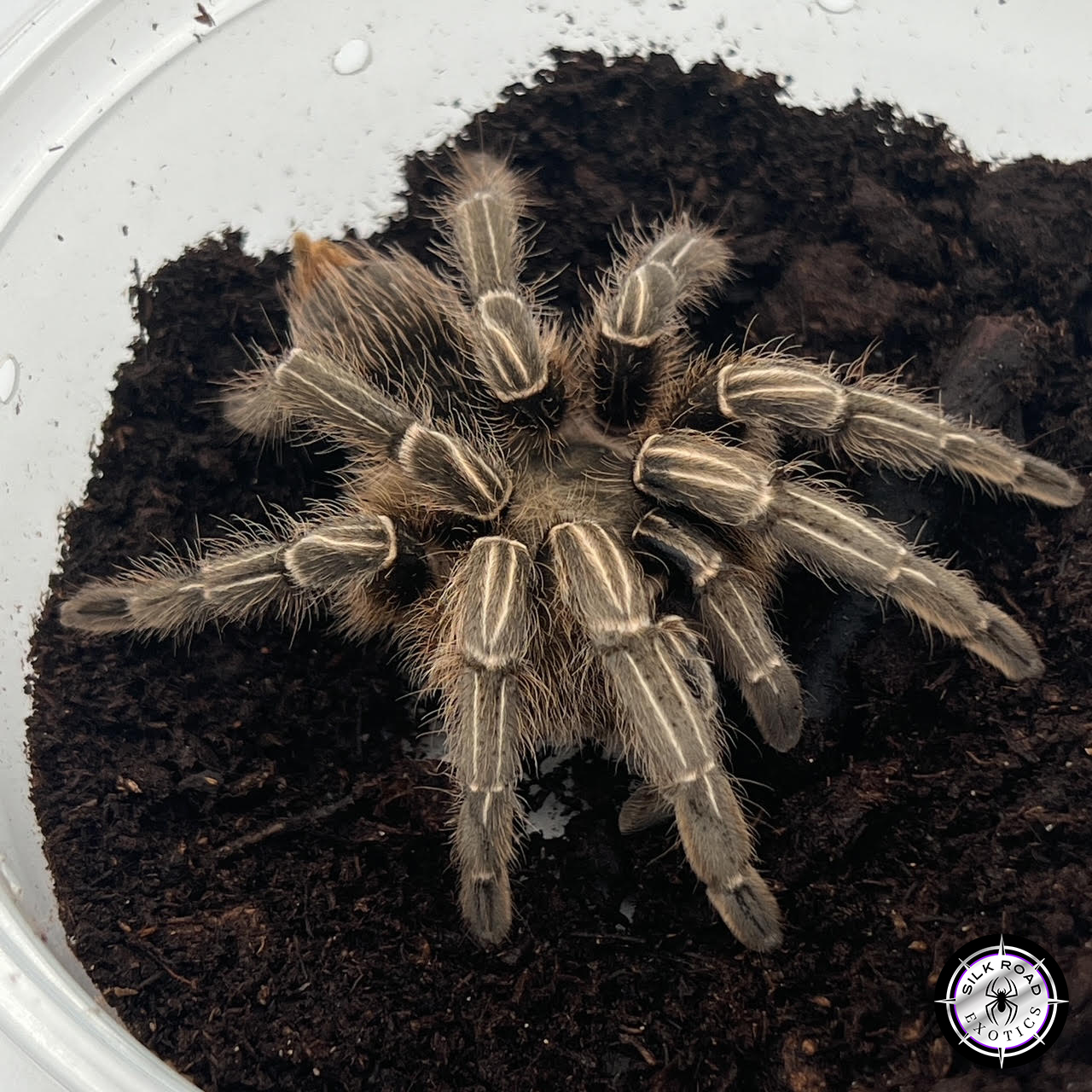 Silk Road Note: These are the “active” members of the Aphonopelma family. While they are very hardy and great for beginners, they are notably faster and more “skittish” than their cousin the Palomino. We recommend this species for keepers who want a spider with a bit more personality and a highly visible, high-contrast look that stands out in any collection.